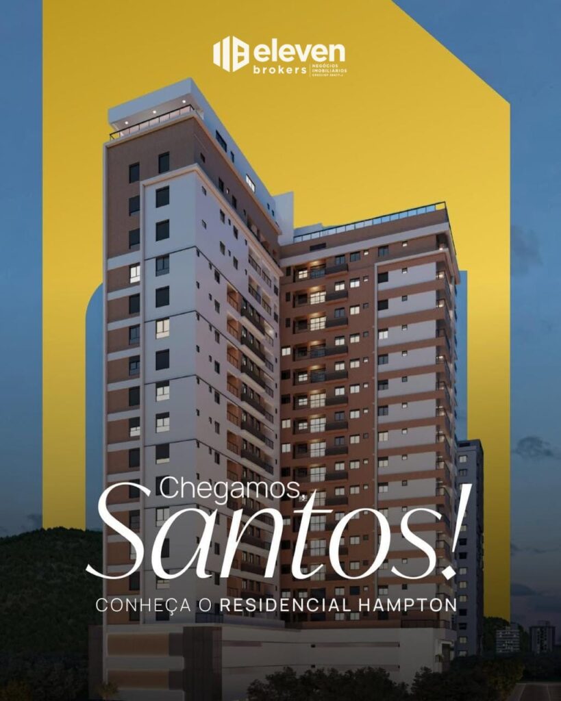 O Hampton Residence Santos é um novo lançamento residencial localizado no tradicional bairro Marapé, em Santos. Com torre única e arquitetura contemporânea, o empreendimento oferece apartamentos de 1 a 3 dormitórios e uma área de lazer completa, incluindo piscina na cobertura com vista panorâmica.